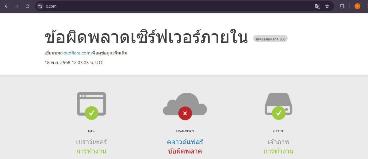 ผู้ใช้ส่วนใหญ่ได้รับข้อความแจ้งข้อผิดพลาดที่เกี่ยวข้องกับ Cloudflare หรือข้อผิดพลาดประเภท "500 Internal Server Error" โดยเหตุการณ์นี้ตอกย้ำว่า Cloudflare คือ Single Point of Failure (SPOF) ที่สำคัญของโลกดิจิทัล